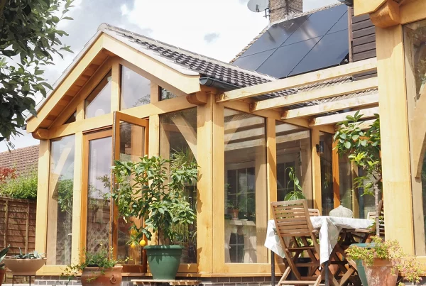 • Strategic Glazing: Timber framed homes with glazed garden rooms, oak atriums and French doors leading to an oak framed balcony scream character and natural light. Combine these characteristics with optimum orientation and timber shading and you can create an energy efficient home which stays cool in the summer and magnifies solar gain in the winter.