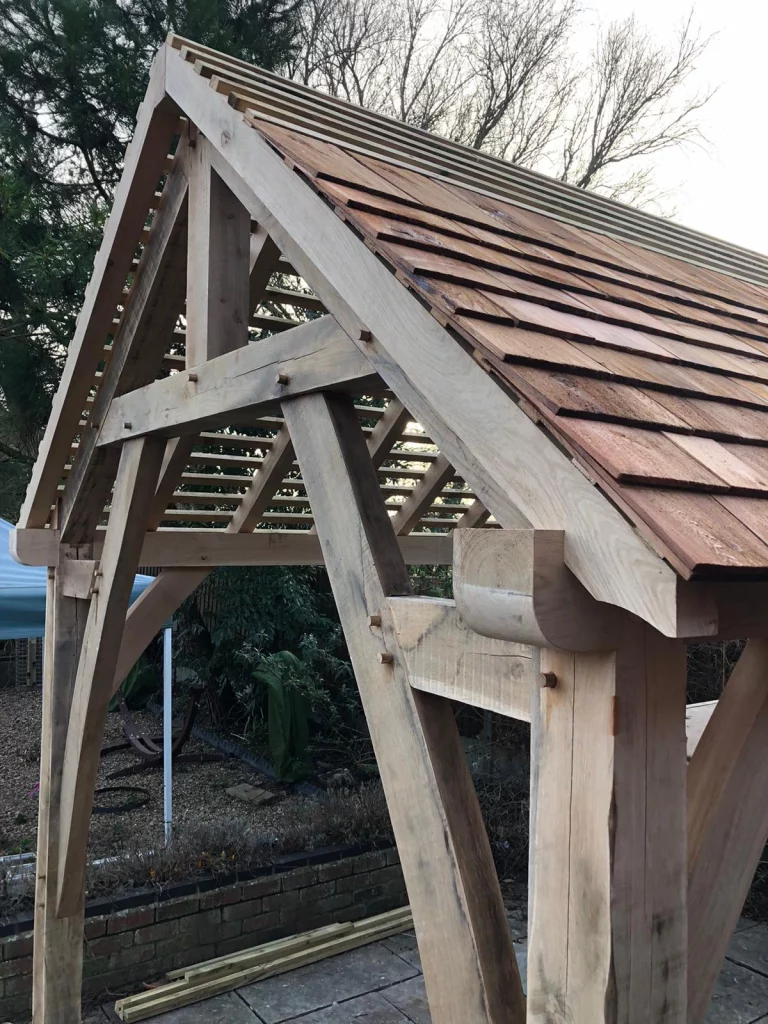 All of our timber frames are handmade in our Lincolnshire workshop using traditional mortice and tenon joints for strength, longevity and authenticity. Even the pegs are handcrafted using our own oak offcuts—nothing wasted, nothing mass-produced.